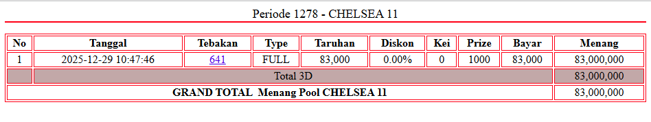 Selamat untuk kemenangan member setia Dingdong Togel dengan user ID : cexxxxxx9 telah JP besar Pada Permainan Togel – Pasaran CHELSEA 11.