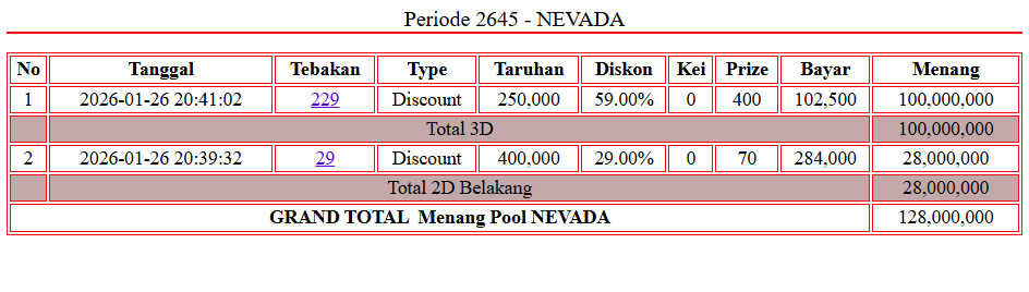 Selamat untuk kemenangan member setia Dingdong Togel dengan user ID : bxxxxx8 telah JP besar Pada Permainan togel – NEVADA.