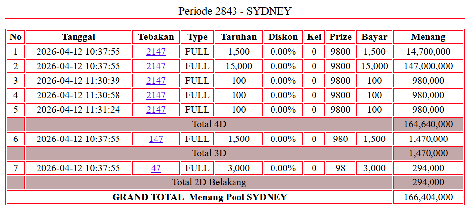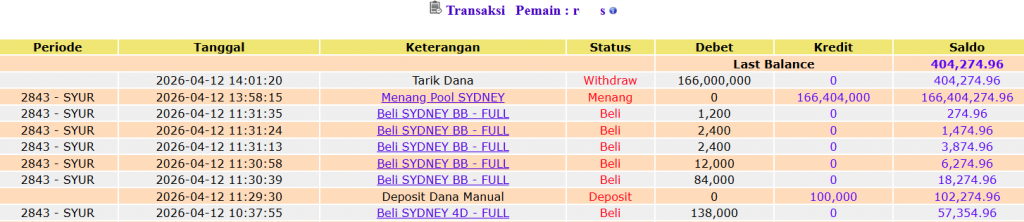 Selamat untuk kemenangan member setia Dingdong Togel dengan user ID : r****s telah JP besar Pada Permainan Togel – Pasaran SYDNEY